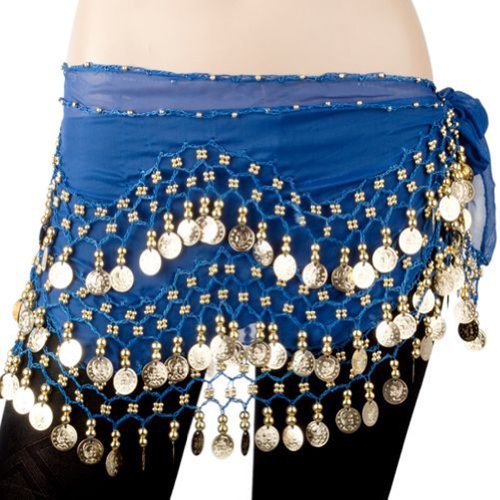- Chiffon. 158 Gold Coins not 128 Coins. Belly Dance Gold Triangle Bracelet is included.
