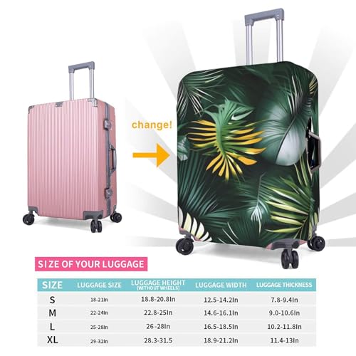 4 SIZES AVAILABLE : Tropical Palm Leaves print Luggage protector, S: fits 18-21 inches suitcases, M: fits 22-24 inches suitcases, L: fits 25-28 inches suitcases, XL: fits 29-32 inches suitcases. Please measure your luggage size before purchase. Luggage cover only, luggage not included.Fabric : Tropical Palm Leaves print Luggage protector, luggage cover is made of highly elastic and stretchable fabric, which ensures that your suitcase is scratch-free and new, no matter how hard the journey isUses : This Luggage Cover Is Versatile And Can Be Used For Everything From Air Travel To Road Trips. It Not Only Protects Your Belongings, But Also Adds A Personal Touch To Your Luggage, Making It Easily Recognisable When You Claim ItUnique Design : One Hand Trolley Hole, One Upper Hand Hand Hole, Two Sides Invisible Zip Hand Holes, One Zip, One Fixed Carabiner, Left And Right Sides Have Invisible Zips, Left And Right Handles Of The Suitcase Can Be In UseEASY TO RECOGNISE : The Tropical Palm Leaves print suitcase cover features a trendy print design that will make you stand out from the crowd. Adding a touch of personality and flair to your luggage, as well as being easily recognisable when claiming your luggage, the exclusive pattern also makes it easy to find and retrieve your luggage at the airport Perfect for everyday use. supreme materials and excellent craftsmanship ensure long-lasting durability.