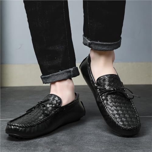 Mens Genuine Leather Woven Loafers Slip On Round Toe Stitching Details Flexible Party Wedding Shoes