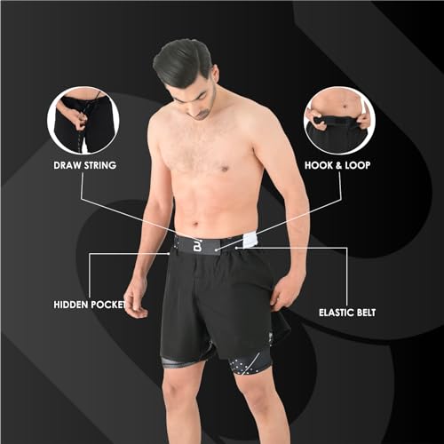 Fabric type: 85% Polyester, 15% SpandexCare instructions: Machine WashOrigin: ImportedPremium Fabric: Made from high-quality polyester and spandex for maximum comfort and flexibility.Sublimated Mesh Panels: Breathable design keeps you cool and dry during intense workouts.Compression Fit: No Gi Rash guard provides a snug fit that enhances muscle support for MMA, BJJ, and Muay Thai training.2-in-1 Design: No Gi BJJ men Shorts feature built-in compression shorts with a phone pocket, perfect for storing essentials while training.Versatile Training Gear: Ideal for grappling, gym workouts, or martial arts, providing excellent performance and durability.Athletic Fit: Designed to move with your body, ensuring unrestricted movement during competition. Perfect for everyday use. High quality materials and excellent craftsmanship ensure long-lasting durability.