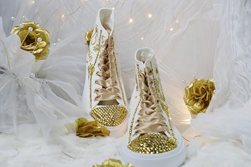 Why Choose Flowers Quinceañera Party Shoes Sneakers for Girl Personalized Tennis Gift Mis XV Bling Zapatillas Decor Letter Shoes (7, Gold)?