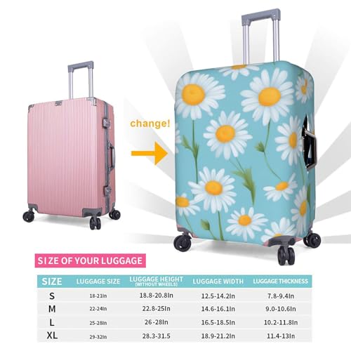 White Daisy In Light Blue Background Print Personalized Travel Luggage Cover With Zipper, Elastic Luggage Cover,For Daily Use