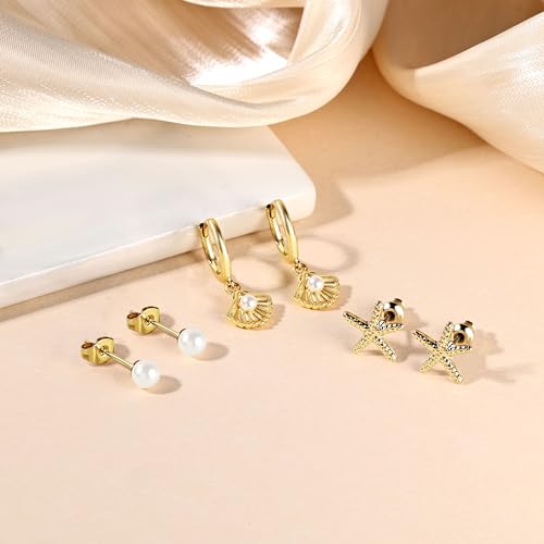 Material: CopperMetal type: 14k gold plated + surgical steelMetal weight: 2.08 ouncesGem type: PearlItem type name: Hoop EarringsSummer Special Pearl Earrings--SPORCLO Summer Earrings Special Collection is coming! From beach parties to music festivals or casual brunches, this gold sea shell pearl and whimsical starfish earrings—brings a fresh coastal vibe to every thermal-weather look.Care for Sensitive Ears--A Lifesaver for Sensitive Ears! Made by surgical steel, this hypoallergenic hoop earrings pampers your ears. Say goodbye to green ears—no irritation, no redness.Easy & Secure Clasps--This studs earrings set features user-friendly clasps & screw back for easy on/off and multiple piercing, staying firm from morning coffee to evening cocktails. You can dance, workout, or run errands without fuss.Occasion Fit--Wedding bride earrings, casual travel outing, date night jewelry, our 14k gold plated earrings will complement your different outfit in different occasion. Coming with a gift box, a thoughtful holiday & anniversary gift for your lover, family, friend.Considerate Customer Support--Our customer service team are strive to offer a positive experience for every customer. If you're unsure about sizing, feel free to contact us or check the product dimensions (5th image) to choose the best fit for you. Perfect for everyday use. superior materials and excellent craftsmanship ensure long-lasting durability.