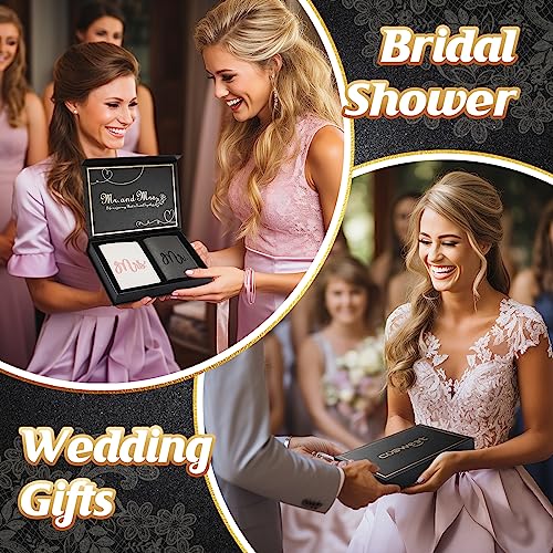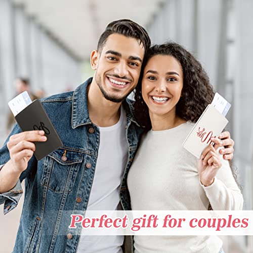 Mr. and Mrs. Luggage Tags and Passport Holder Set - Bridal Shower Gifts with 2 Passport Leather Covers, Wedding Honeymoon Travel Essentials for Bride & Groom Couples (2 Sets, Embroidery Style)