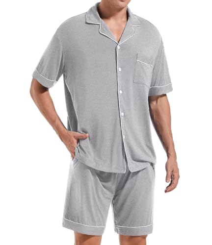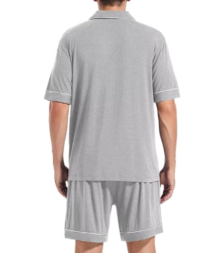 Men Pajamas Set Short Sleeve Sleepwear Button Down Loungewear 2 PCS Modal Sets with Pockets