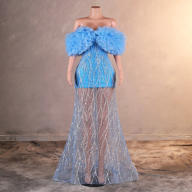 This Mermaid / Trumpet Evening Gown Elegant Dress Formal Prom Sweep / Brush Train Sleeveless Off Shoulder Lace with Sequin Embroidery combines elegant design with practical functionality. Every detail has been carefully considered to ensure you get the best possible experience. The remarkable construction means this product will serve you well for years to come.