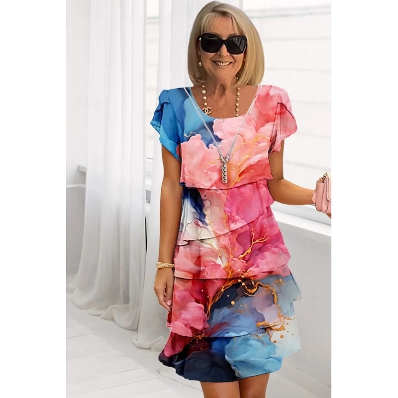 must-have ! Women's Midi Dress Summer Dress Print Dress Elegant Daily Regular Fit Floral Geometric Short Sleeve Crew Neck Light Yellow Light Pink Bright pink Pink Summer