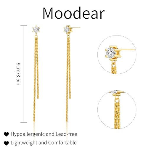 Moodear Gold Dangle Earrings 14K Gold Plated Chain Earrings for Women Trendy Dainty Hypoallergenic Long Chain Drop Tassel CZ/Pearl Earrings Wedding Jewelry Gift