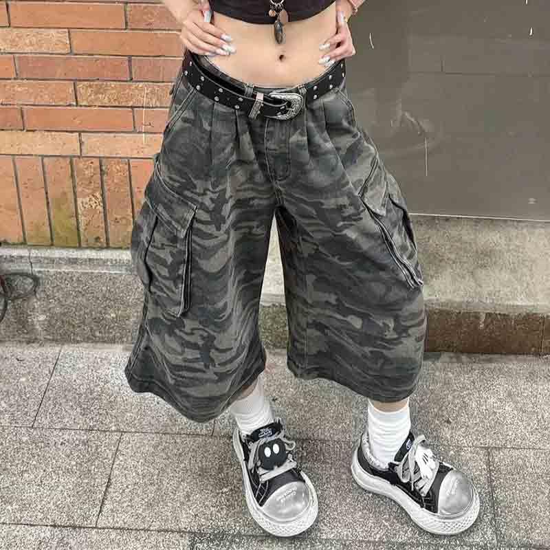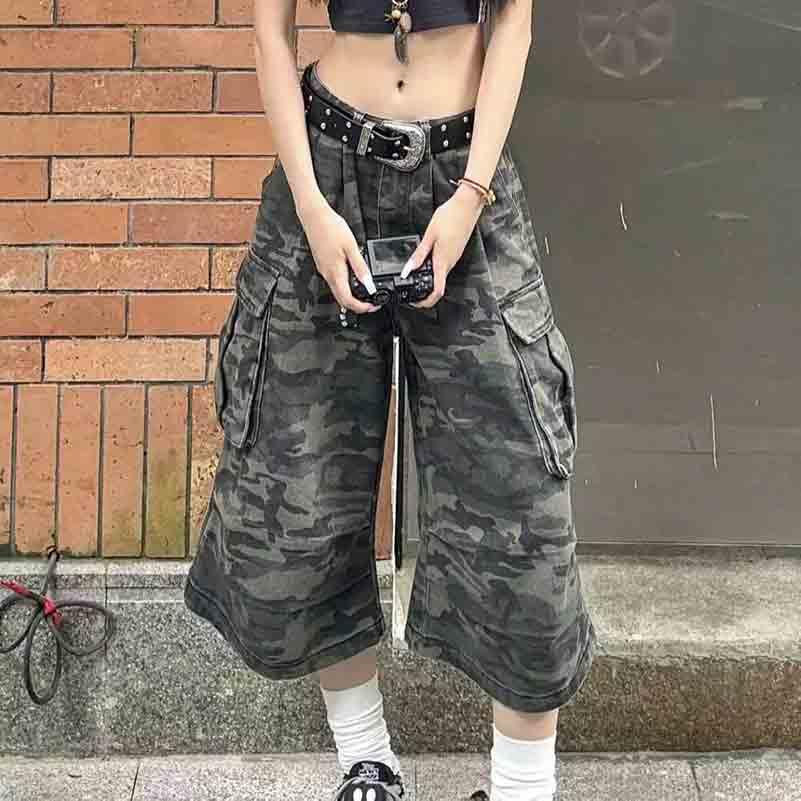 BXCNCKD Women's high Waist Slimming Camouflage Loose Wide Leg Pants Street Trend Seven Quarter Jeans Cargo Pants