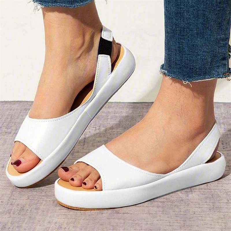 Women's Blue Slingback Flat Sandals with Elastic Strap and Open Toe, Lightweight Casual Summer Shoes for Walking, Travel, and Daily Wear