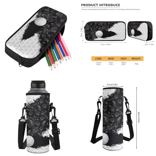 Golf Printed School Backpack and Lunch Box Set with Water Bottle Holder Pencil Case Lightweight Backpack Set for Preschool Middle School, Black