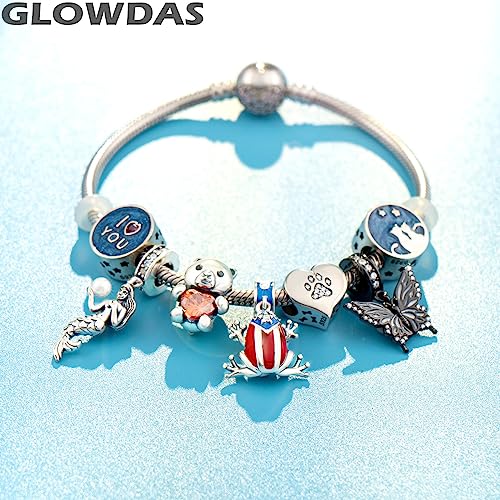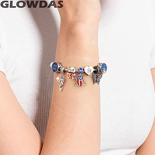 2025 Puerto Rico Coqui Charm, Frog Prince Pendant Charms, fit Pandora Animal Bracelet, 925 Sterling Silver Enamel Puerto Rican Flag Dangle Beads, Gifts for Vacation/Mothers Day/Travel