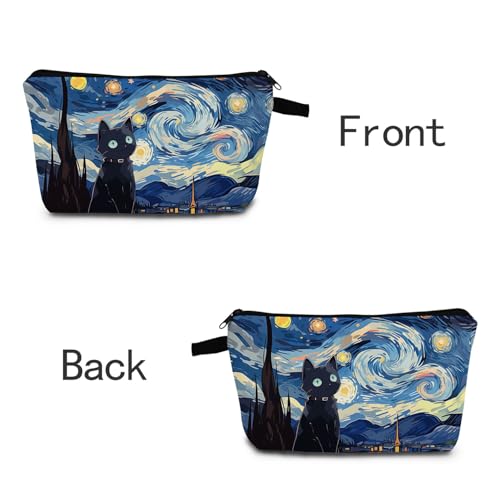 Exquisite Patterns: This makeup bag features Starry Night Oil Painting Cat print with double-sided printing design, boasting vibrant colors that resist fading. A variety of cute, fun, and fashionable makeup bags are available for your selection.Material: Our Starry Night Oil Painting Cat printed makeup bag is crafted from polyester with a sponge-lined fabric, incorporating a thickened inner layer that offers effective cushioning and protection for cosmetics, while the surface remains comfortable and resistant to pilling.Size: This compact makeup bag measures 22 cm (8.65 inches) * 13.5 cm (5.35 inches). The bag utilizes thermal transfer printing technology, ensuring colors that do not fade easily. Our toiletry bag is a versatile item, suitable for use as a cosmetics storage pouch, daily commuting makeup bag, coin purse, candy bag, and more.Versatile Usage: The mini makeup bag is suitable for various occasions, such as vacations, beach trips, gym sessions, bathing, weddings, camping, and outdoor activities. It can be used not only as a makeup bag but also as a travel bag, storage pouch, and coin purse.Gift Idea: Our small makeup bags feature a stylish appearance, intricate patterns, and are soft and lightweight. They make perfect gifts for occasions such as graduation thank-you presents, birthdays, Valentine's Day, anniversaries, Christmas, Thanksgiving, Mother's Day, and for club members. Perfect for everyday use. first-class materials and excellent craftsmanship ensure long-lasting durability.