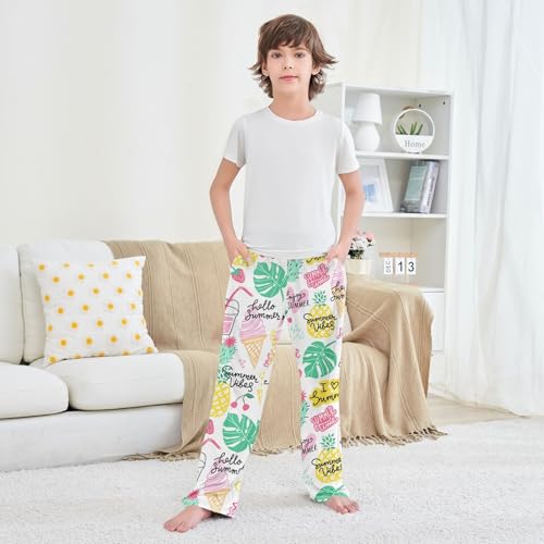 I treasure Summer Boys Long Pants plush Trousers Elastic Waist Kids Lounge Bottoms with Pockets S-XL