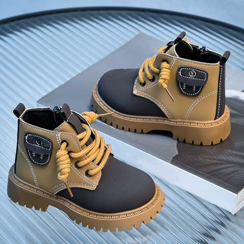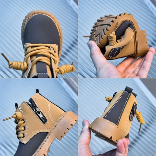 Boys Ankle Boots Lace Up Side Zipper Combat Boots Fuax Leather Short Military Boots Lug Sole (Little Kid/Big Kids)