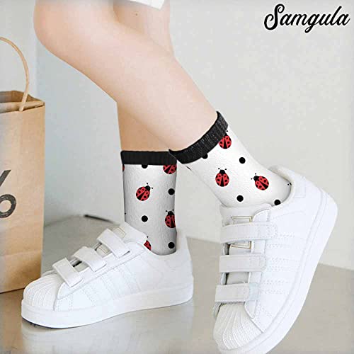 Red Ladybird Crew Socks for Woman Size 6-8 Polka Dots Natural Life Lovely Girls Socks