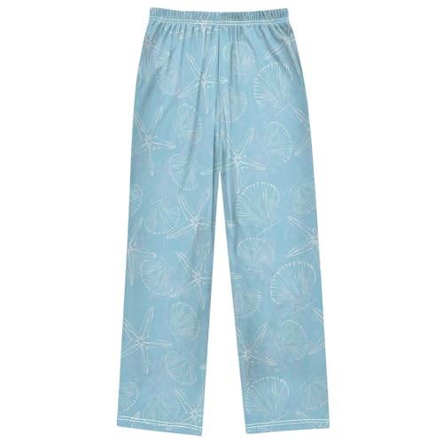 Boy's Pants White Scallop Shell Blue Jogger Pants Elastic Waist Long Bottoms Trousers with Pockets 6-14 Years