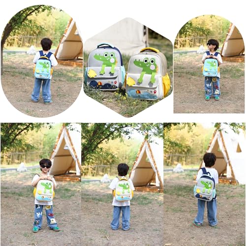 Dinosaur Backpack for kids:Toddler School Backpack Size: 32cm*25cm*12cm,12.59H*9.8L*4.72W inches.Toddler Backpack is children's favorite dinosaur designs, very cuteMultiple Pockets,1 Large main pocket,1 velcro front pockets,2 side pockets.Preschool backpacks can easily accommodate books, water bottles, snacks, and other daily essentials.This dinosaur toddler backpack is suitable for boys ages 3-5 years oldErgonomic Design:S-shaped breathable shoulder straps with thickened sponge inside reduce the burden on the shoulders,Breathable material on the back keeps the backpack from sweating even and also put a adjustable secured chest buckle,protecting your kids undeveloped spineWater-resistant and resilient Cute Backpack:Toddler Girls Boys Dinosaur Backpack made of water-resistant,tear-resistant nylon fabrics,exquisite workmanship of sturdy stitching.lightweight,0.88 lb only.Vivid Dinosaur Patterns Backpack Suitable for Many Ocassions: Recommended preschooler or a kid to daycare.School/outdoor/travel/sports.Perfect gift for kids on Birthday/Christmas/New Year Perfect for everyday use. supreme materials and excellent craftsmanship ensure long-lasting durability.