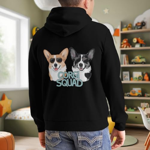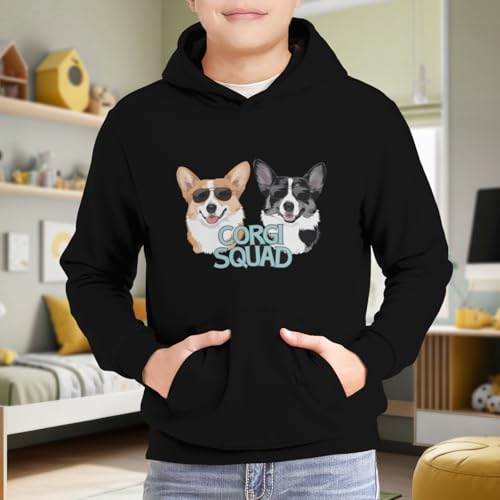 Kids Funny Cute Corgi Squad Boys Girls Lightweight Kangaroo Pocket Fleece Hoodies