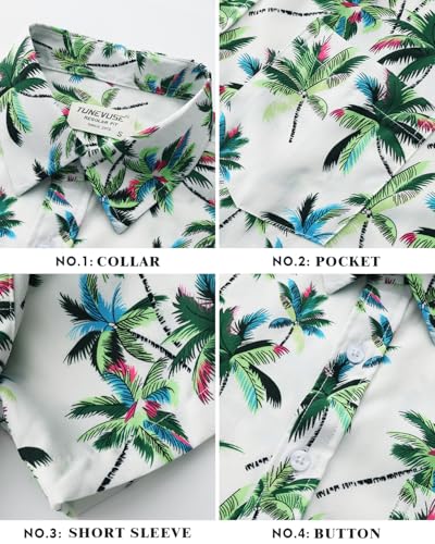 TUNEVUSE Mens Hawaiian Short Sleeve Shirt Button Down Tropical Floral Beach Vacation Shirt