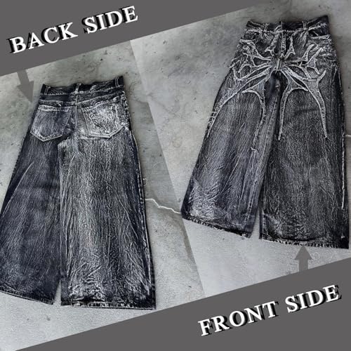 Fabric type: 100% PolyesterOrigin: ImportedRise style: Mid RiseLeg style: TrouserMaterials:baggy jeans,y2k graphic jeans are made of polyester.Comfortable to wear and has fashion looks.Features:grunge jeans,loose fit jeans,wide leg jeans,hip hop pants,vintage pants,oversized jeans,mens denim pants,grunge pants,mens trousers,skater jeans,embroidered jeansMatch:streetwear pants,denim jeans,best choice for hip hop,skateboard,street dance,sport,leisure or everyday life,Office,working,traveling,formal,school,dating,hiking casual,party,Ideal Gift: wide leg jeans,streetwear jeans,vintage jeans will be the great gift for yourself,your lover,family or friends,Size:y2k jeans men have different size. please refer to size chart in picture,choose your suitable size. Perfect for everyday use. High quality materials and excellent craftsmanship ensure long-lasting durability.