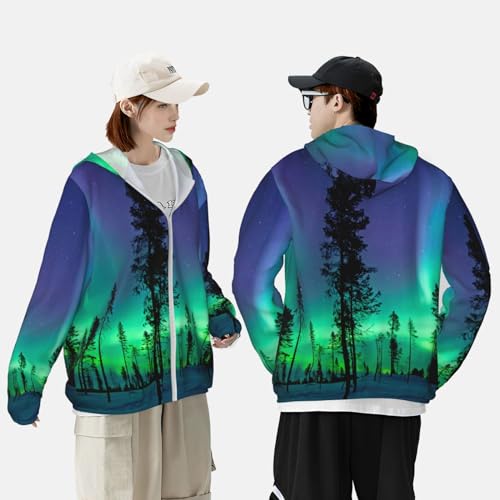 Why Choose UPF 50+ Sun Protection Clothing Lapland Finland Aurora Borealis Zip Up Hooded Cooling Shirt?