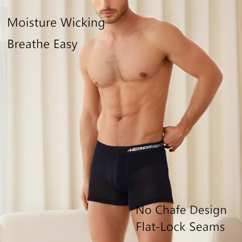 MERINNOVATION 100% Merino Wool Boxer Briefs for Men 2 Packs Underwear Boy Shorts Everyday Weight Breathable Anti-Odor
