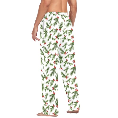 Mens Cotton Pajama Pants Sleep Lounge Pj Bottoms Sleepwear with Pockets Drawstring S Christmas Green Bow